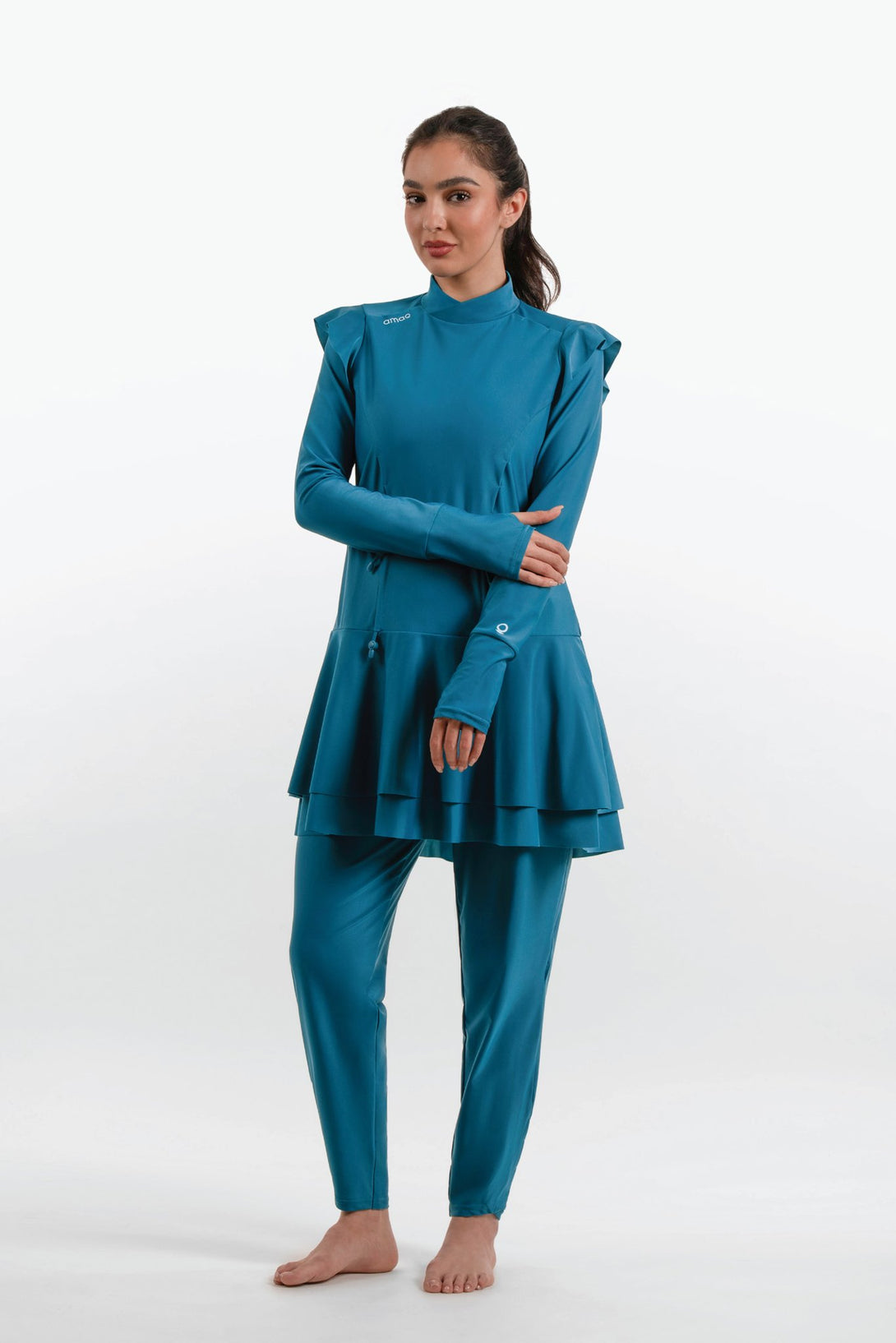 This elegant modest swimsuit offers a sophisticated and stylish solution. Made from high-quality, quick-drying fabric, it ensures both practicality, modesty, making it ideal for swimming and beach activities.